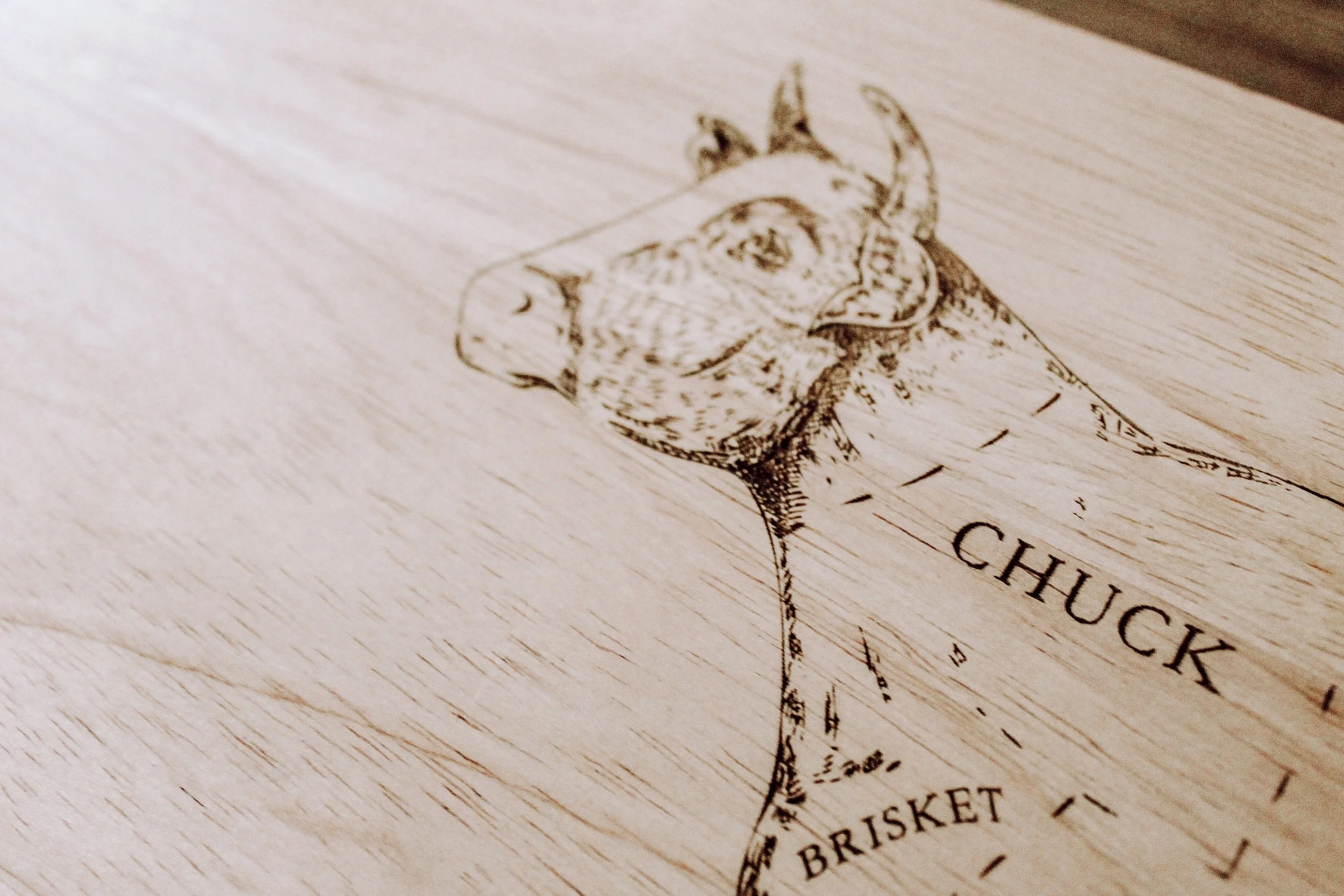 Shop › Beef Cuts Engraved Cutting Board Beef Cuts Engraved Cutting Board $80.00 21.96 x 7.99 x 1.97 inch cutting board with handles/feetEngraved imageSealed with butcher block finishMore customization available upon request! 21.96 x 7.99 x 1.97 inch cutting board with handles/feetEngraved imageSealed with butcher block finishMore customization available upon request! Purchase Added!