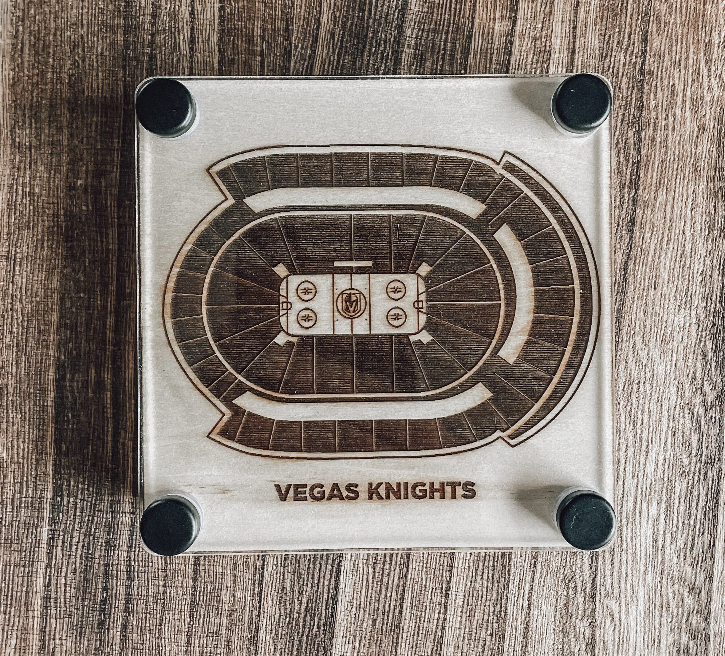 Set of 2 -4" x 4" Coasters -Engraved Wood with Clear acrylic top layer