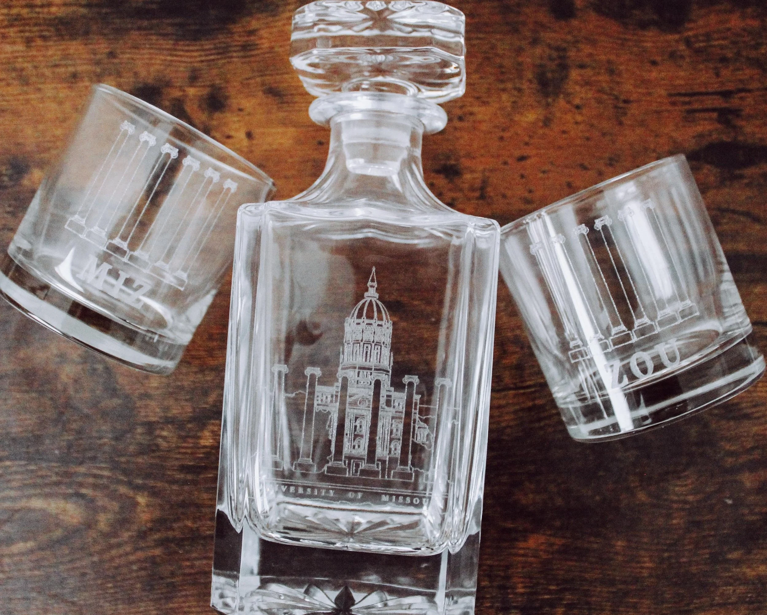 Shop › University of Missouri Engraved Decanter Set University of Missouri Engraved Decanter Set from $30.00 Engraved Decanter and whiskey glass set *For specific customs contact me directly! Engraved Decanter and whiskey glass set *For specific customs contact me directly! School: Select School Mizzou Missouri State Set: Select Set Decanter only Whiskey glasses (2) Decanter + glasses Purchase Added!