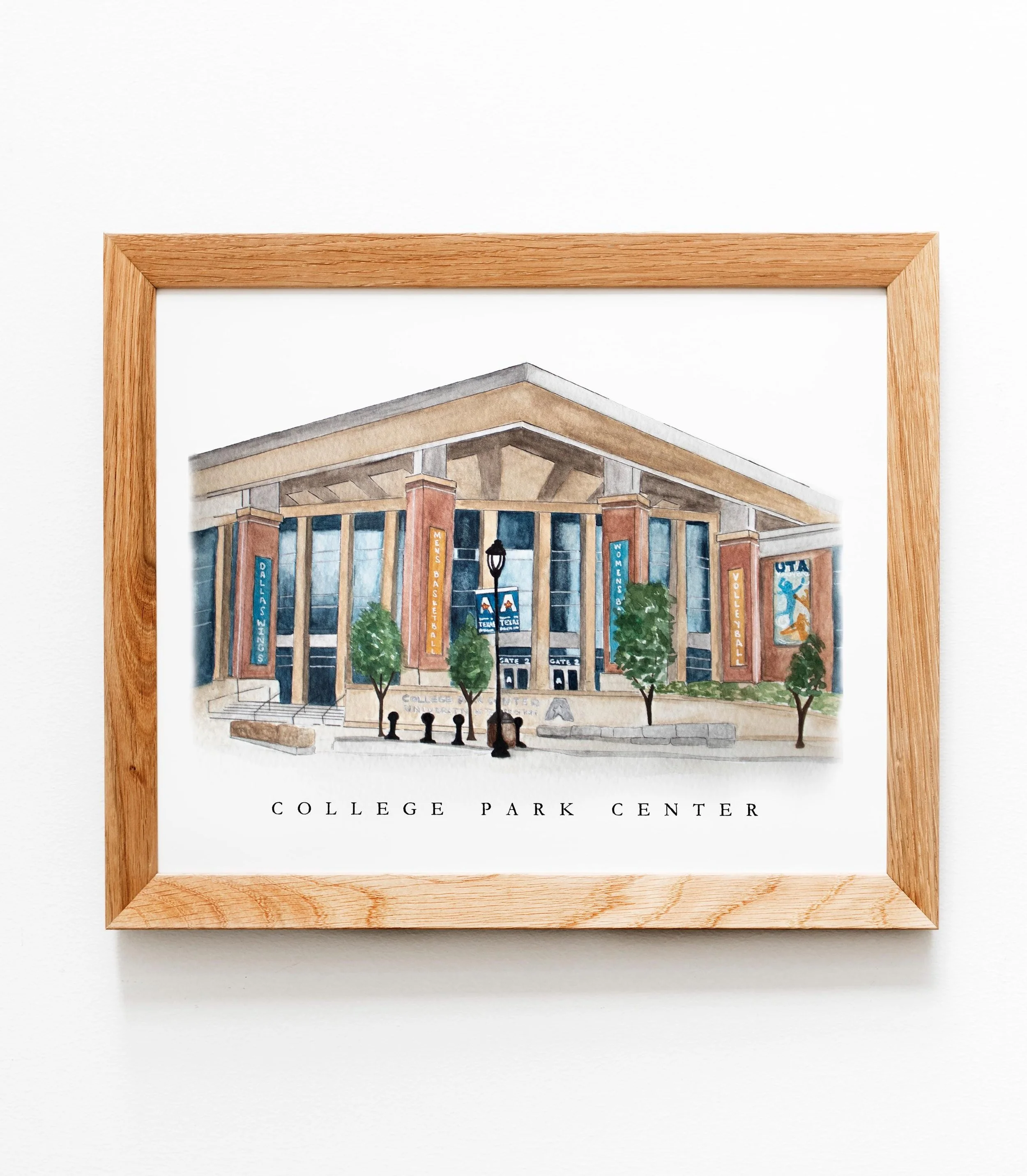 Watercolor print of College Park Center, A, Horse, or 'Buck Em Print Printed on high quality stock Custom sizing available upon request